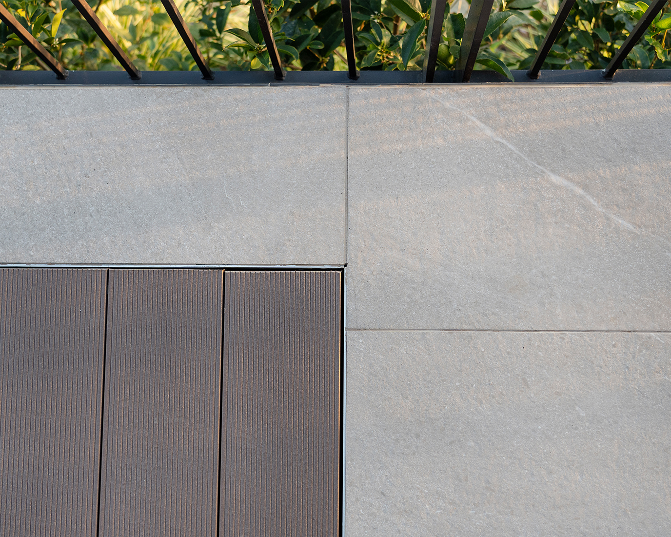 Il gres effetto pietra colpisce sempre, perché riesce a trasformare una semplice bellezza naturale in un materiale sorprendentemente contemporaneo. In Villa BD questo diventa molto evidente grazie alla continuità materica che unisce indoor e outdoor. All’interno porta ordine, eleganza e sobrietà, mentre all’esterno dialoga con il paesaggio esaltando una bellezza pura e semplice. Inoltre, il formato scelto per Villa BD massimizza questo effetto di continuità, inonda l’intera abitazione con un’atmosfera elegante e naturale.