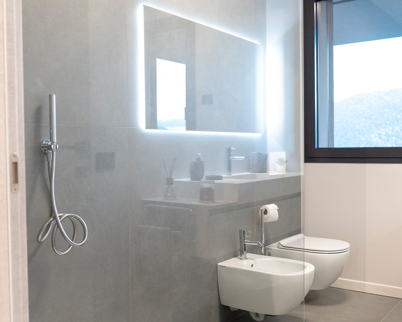 In Villa BD nulla viene lasciato al caso! L’armonia di questa abitazione vista lago è frutto di una continuità visiva ben progettata. Protagonista è il gres porcellanato che regna in tutta la casa in una palette cromatica scura, avvolgendo l’intera abitazione in un’aura affascinate ed enigmatica.