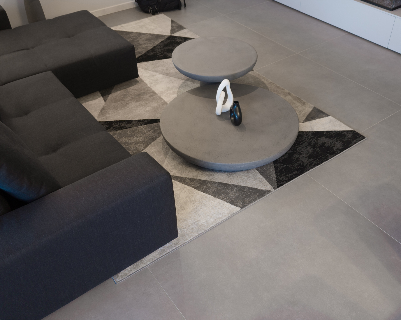 Il suo giovane proprietario ha progettato l’intera casa seguendo una palette pressoché monocromatica, nella quale il nero e il grigio fanno da padroni. Seguendone i dettami, noi di Pecis Paolo abbiamo selezionato pavimenti e rivestimenti coerenti con i desiderata, di alta qualità.